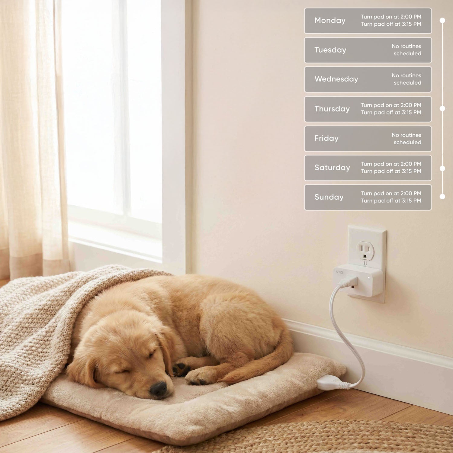 Create schedules for pet devices to turn on/off automatically at certain times of day or when you leave the house.