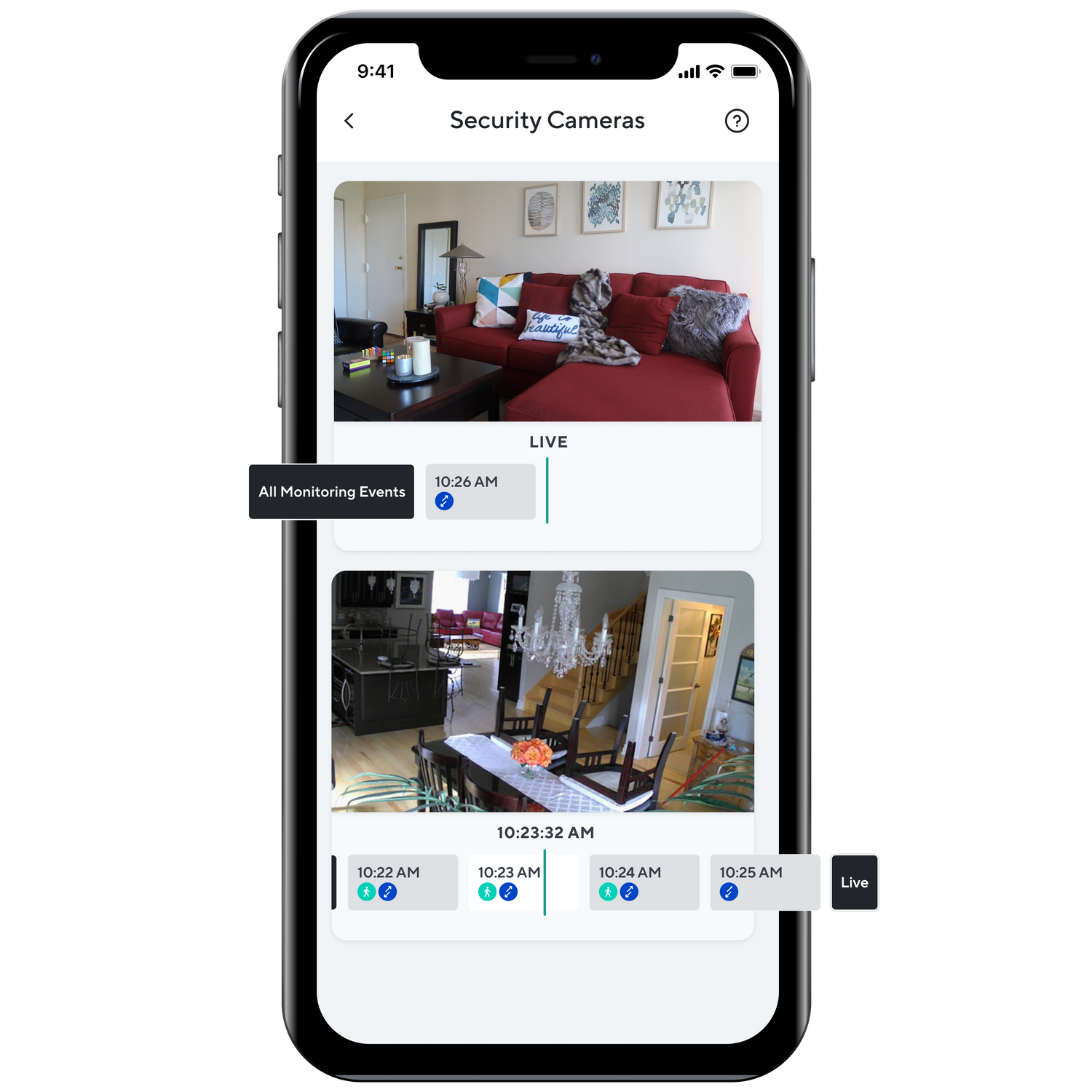Quickly view all your cameras' live feeds in one place and scroll through motion-activated event recordings. Say "hello!" with two-way audio and customize how you want to be notified when motion or sound is detected.