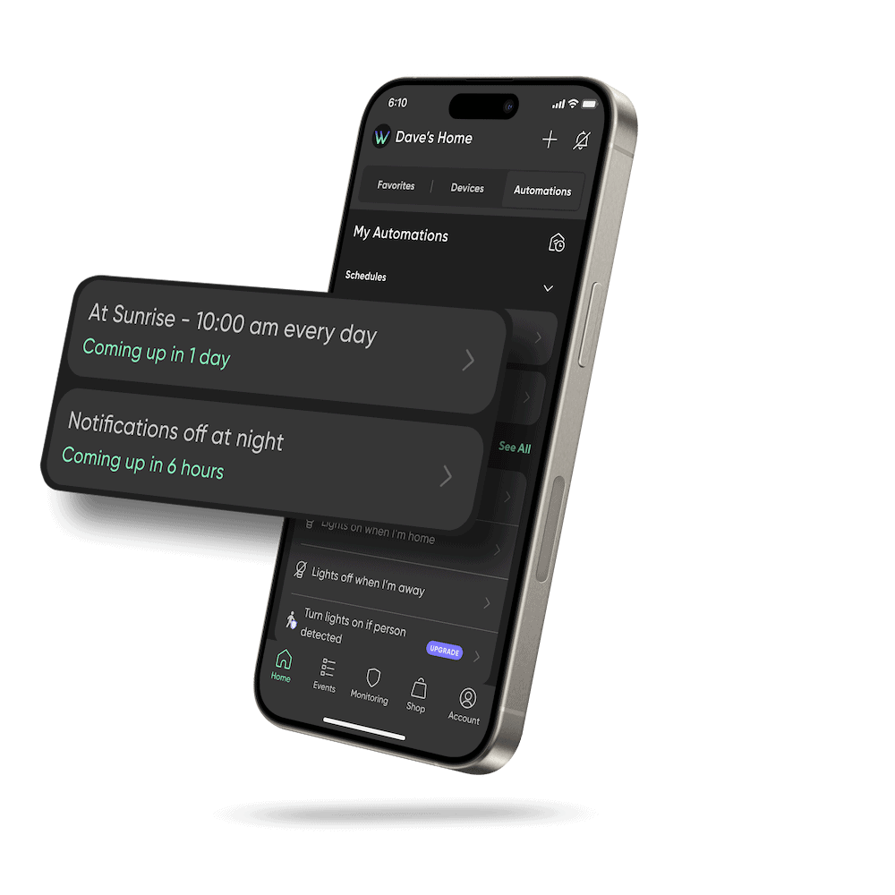 Check the Live streams of your favorite Wyze Cams at a glance, and manage other devices, groups and automations all on one page.