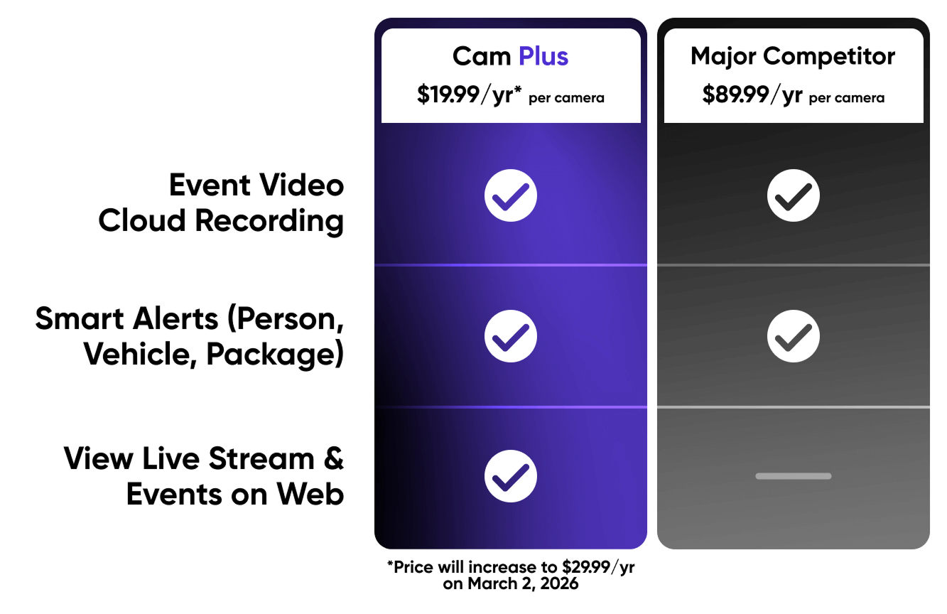 Simple (yet powerful) security that won't break the bank. Enhance your Wyze cam with Cam Plus.