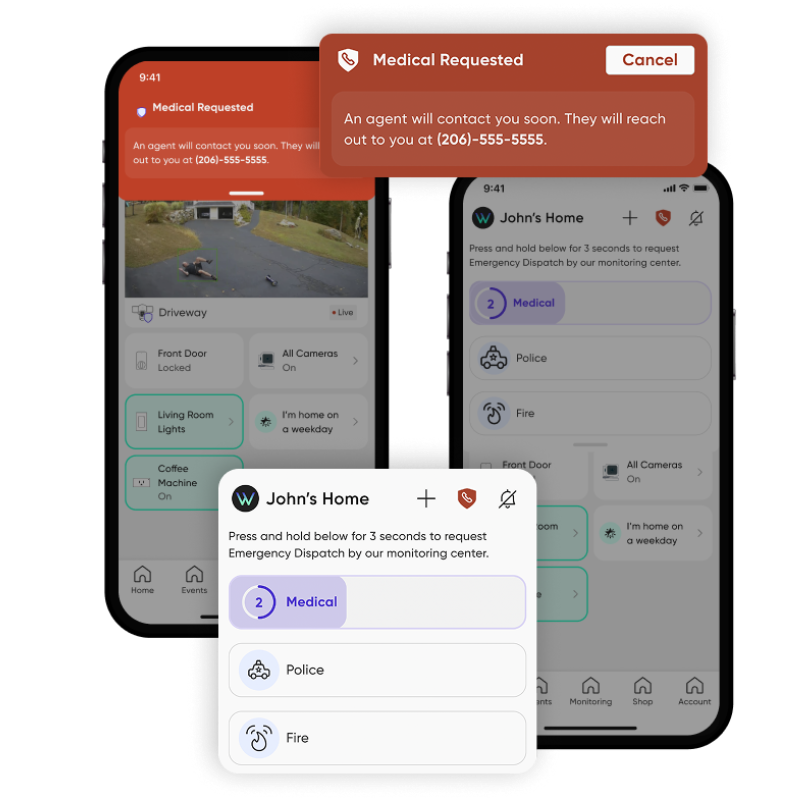 - 24/7 Emergency Dispatch - Send emergency services to your home even when you're away