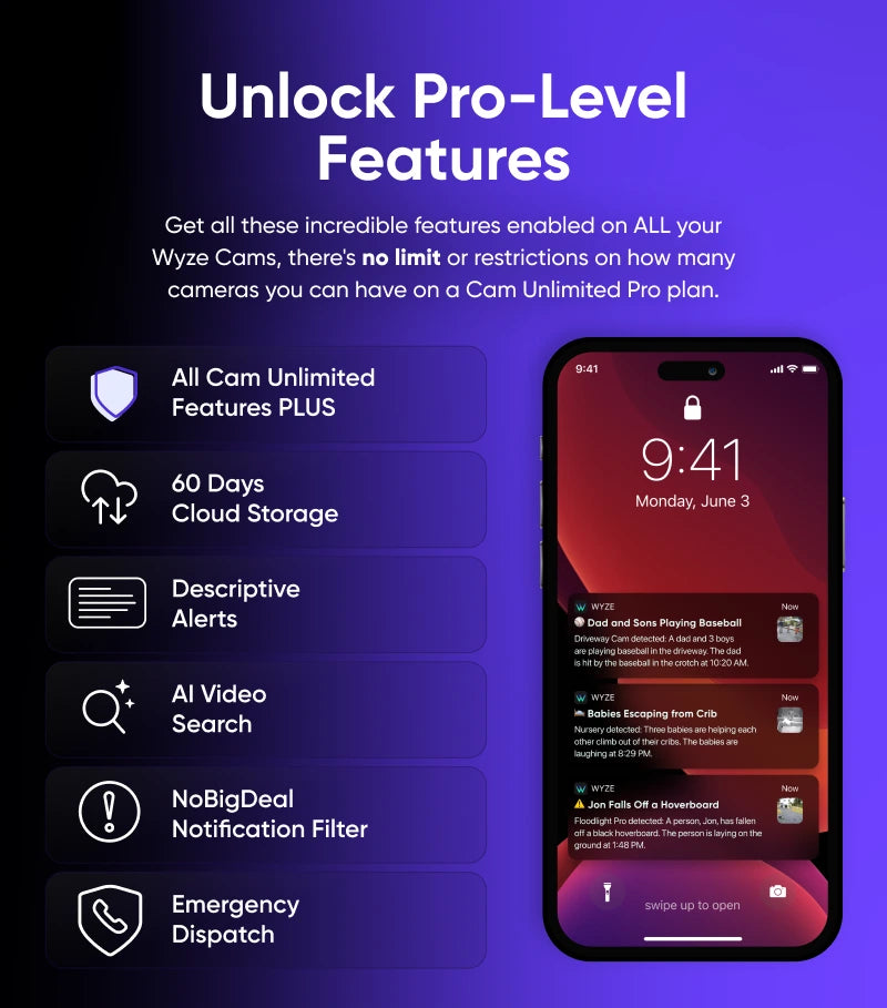 All you need is a Wyze camera to get started today. With Cam Unlimited Pro you won't miss out on any of our features.
