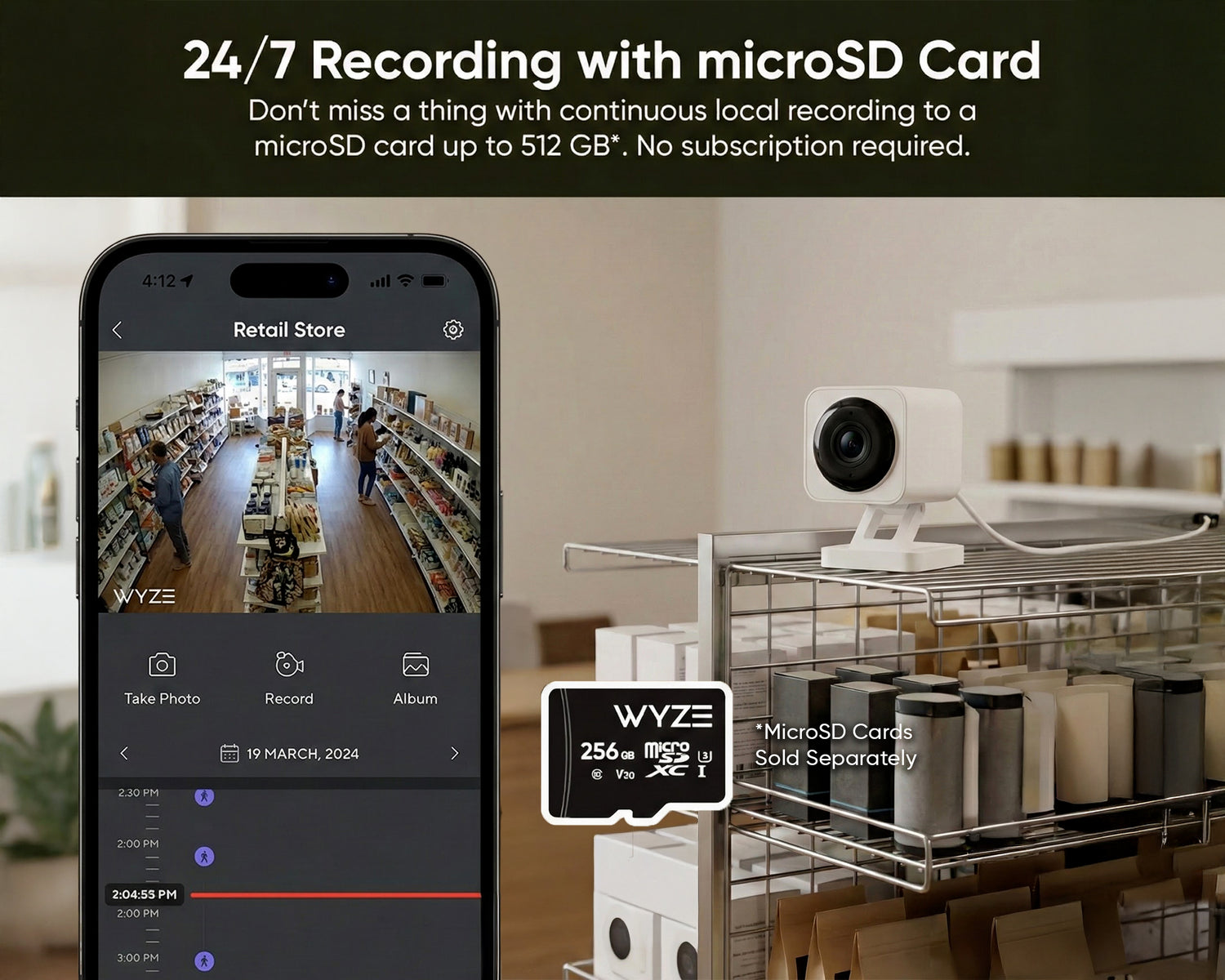 24/7 Recording with MicroSD Card.*