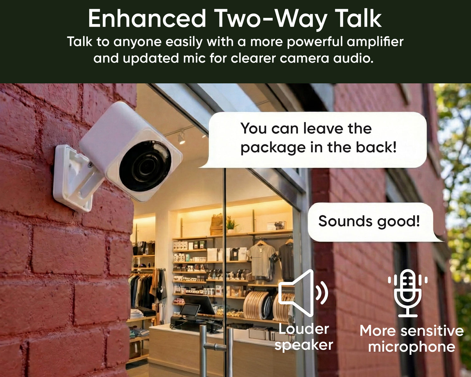 Advanced Audio Coding (AAC), a more powerful amplifier, and an updated mic combine for the best audio ever on a Wyze Cam.
