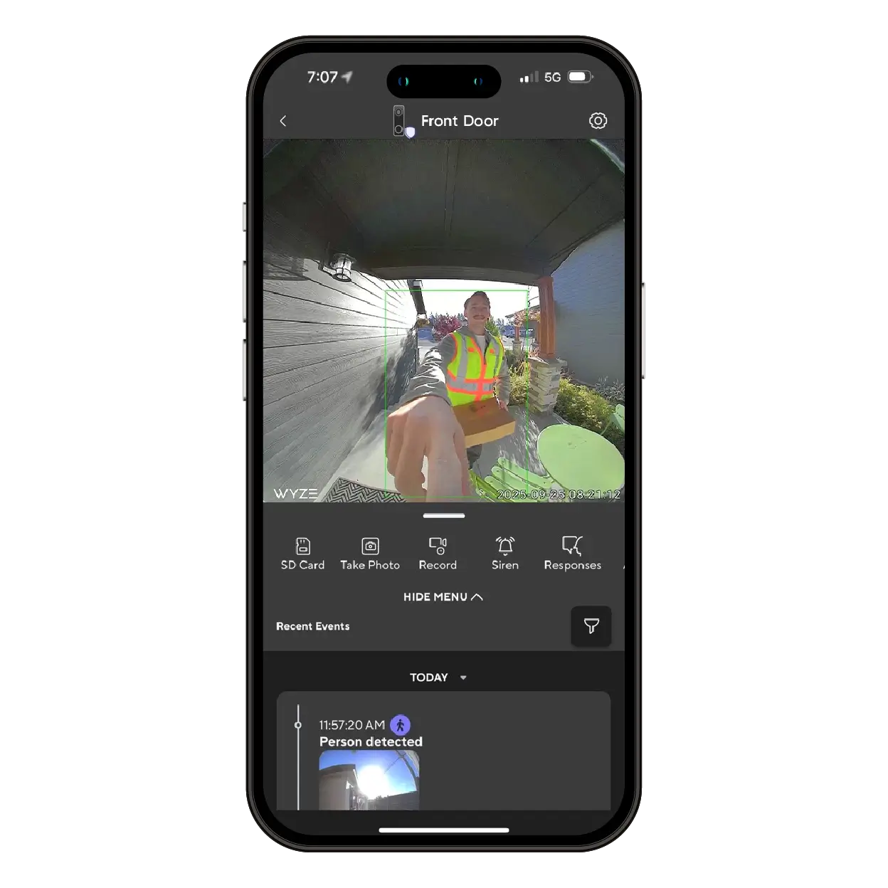 With two-way audio, you can greet guests, give delivery instructions, or let friends know you’ll be right there, all through the Wyze app.