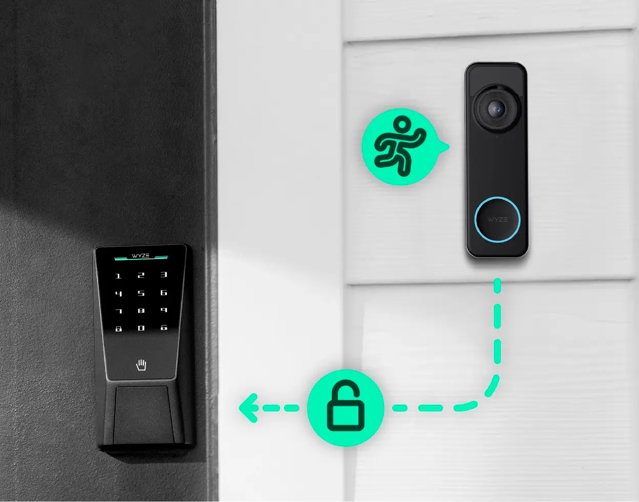 See who’s at the door and let them in, all from the same screen. When paired with Wyze Palm Lock, you can unlock your door remotely right from the Wyze app or your doorbell’s live view.