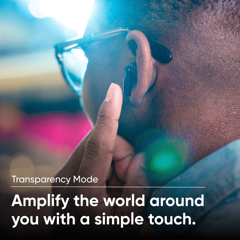 Tap to pause, play and skip tracks without digging out your phone. Tap and hold to toggle ANC and Transparency Mode.