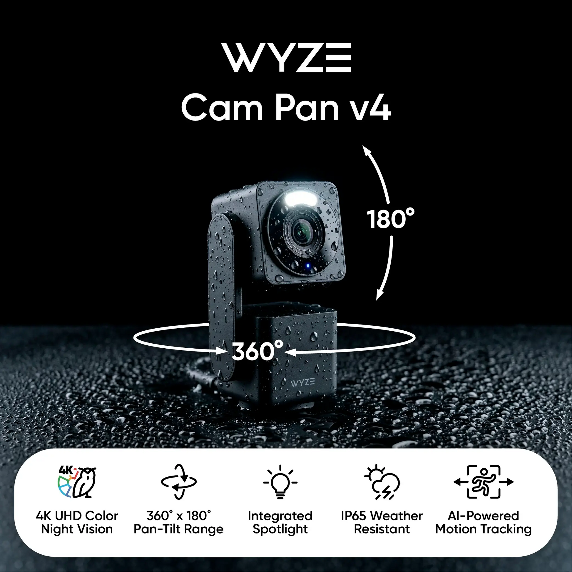 Note: Wyze Cam Pan v4 works with Cam Plus, Cam Unlimited, and Cam Unlimited Pro.