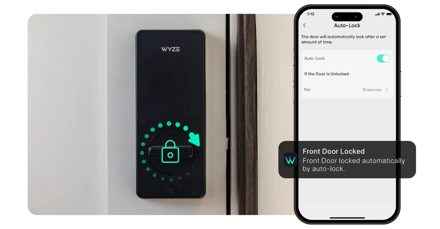 Set a custom auto-lock timer in the Wyze app and Wyze Lock Bolt v2 will lock the door for you after that time passes, so “Did I lock the door?” is no longer a question.