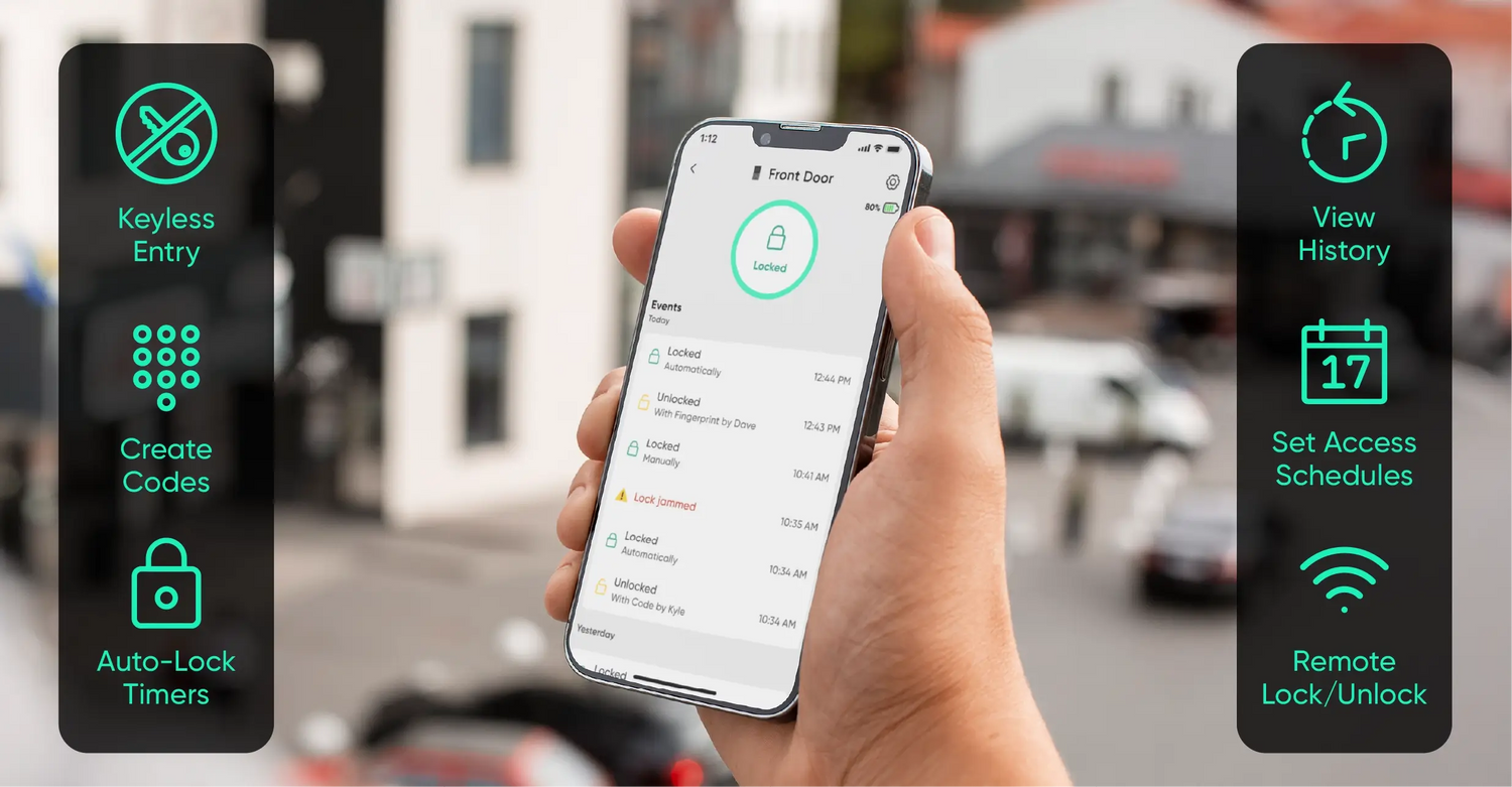Create and store up to 50 access codes for family and guests, without manually programming each one into the lock. You can also store up to 50 total fingerprints for frequent users.