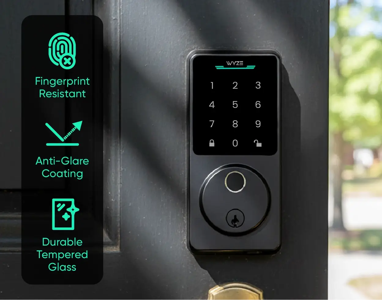 Unlike plastic keypads that peel, fade, and crack, Wyze Lock Bolt v2 uses high-grade tempered glass that resists scratches, smudges, and glare, keeping numbers easy to read and your entryway looking sharp—even after rainy commutes, muddy hands, and daily use by the whole family.