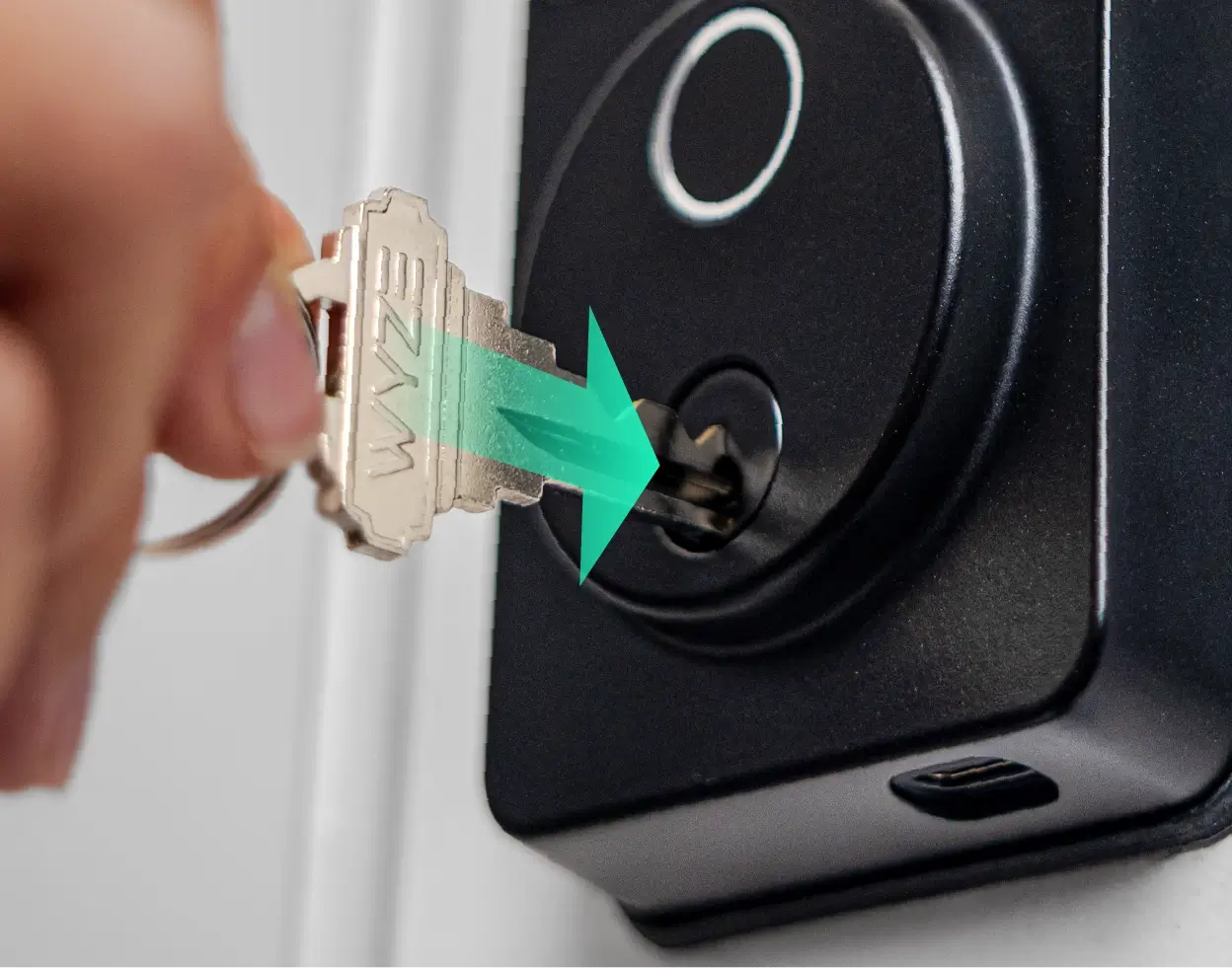 Wyze Lock Bolt v2 is designed to be totally keyless for everyday use, but it still includes a hidden traditional keyway and backup keys for peace of mind.