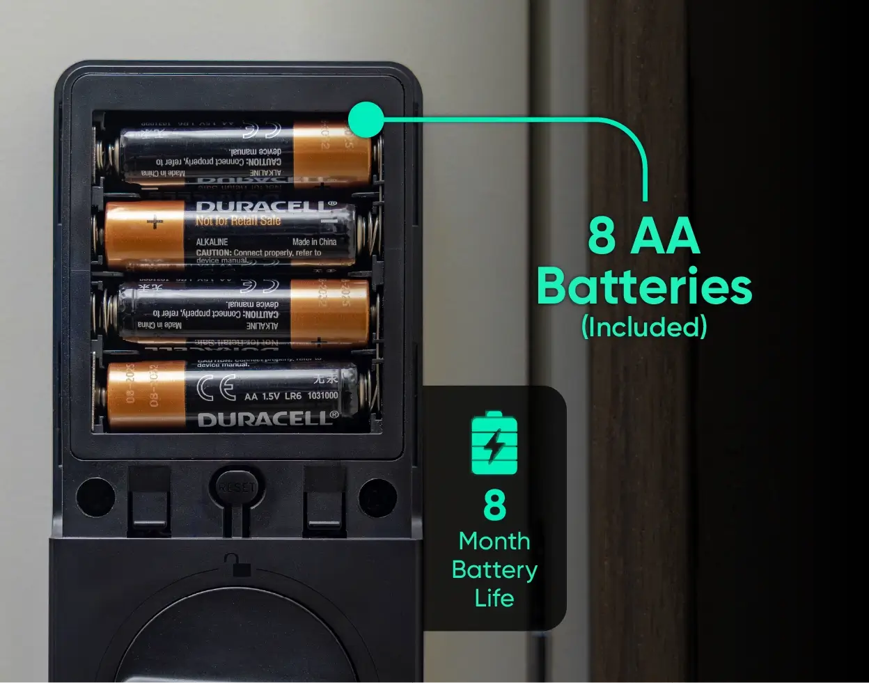 If the batteries ever fully die while you’re outside, simply connect a USB-C power bank to the emergency port, power the lock for a moment, and enter your code to get in—no lockouts, no locksmiths, ever!