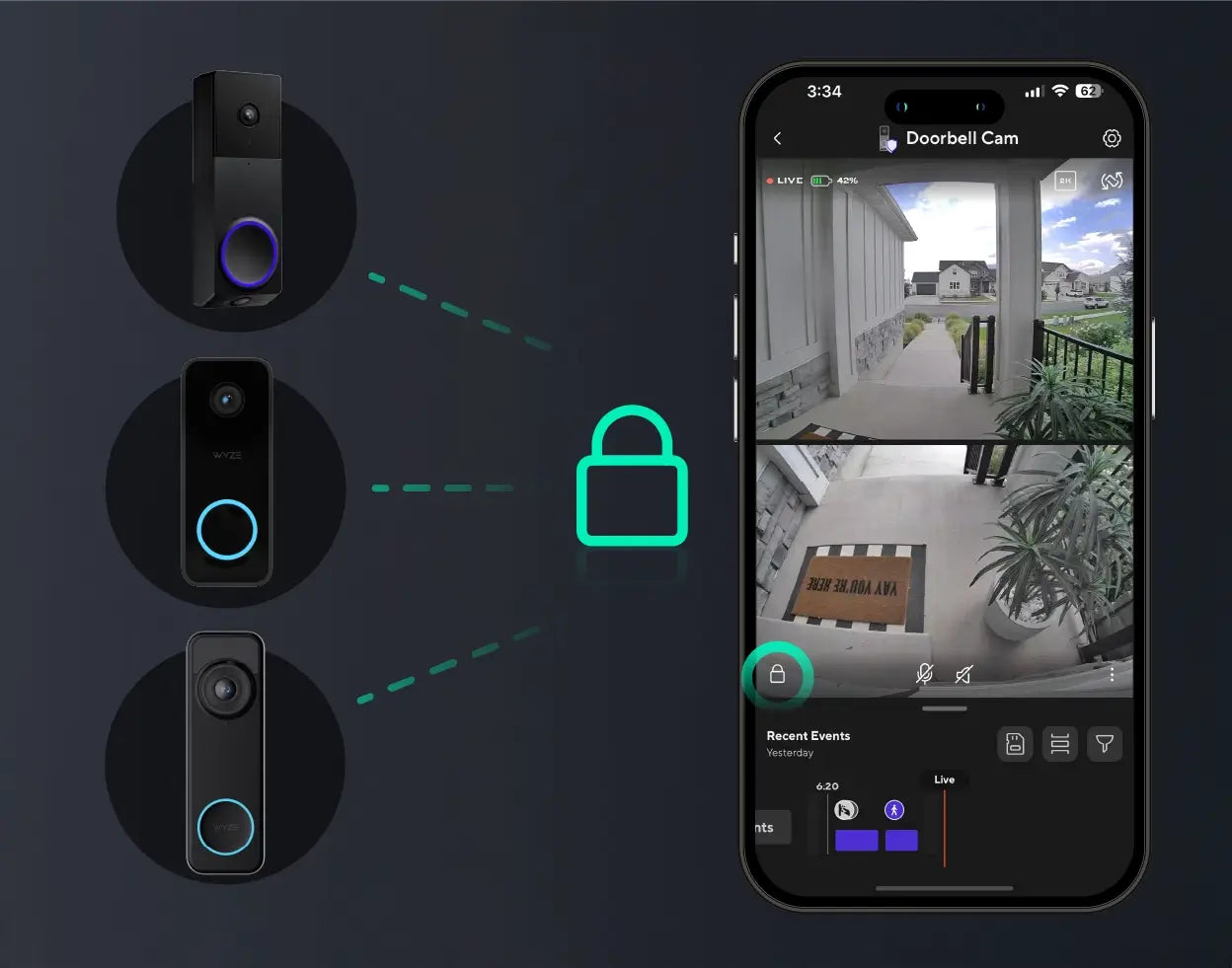 Lock and unlock directly from the live view of your Wyze video doorbell without switching between screens to open the door for family and friends.