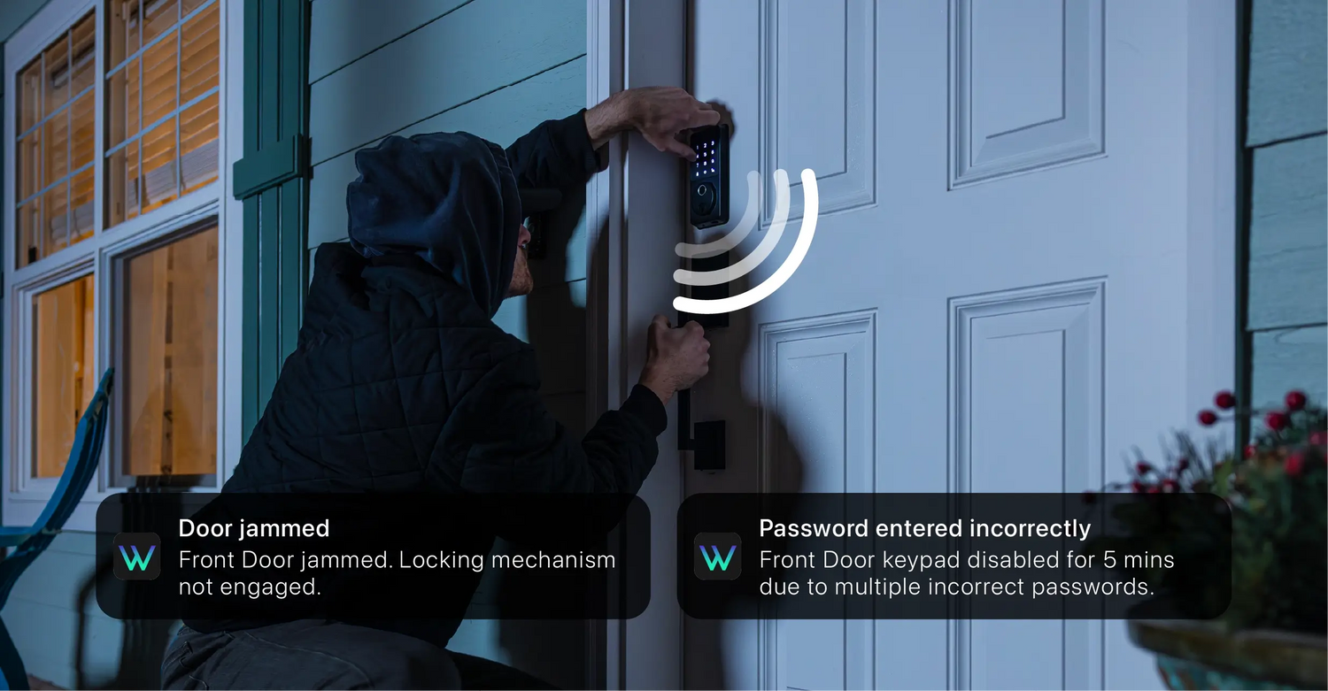 If someone repeatedly enters the wrong code or tries to force the bolt, Wyze Lock Bolt v2 detects the tampering, sounds a built-in alarm, and can alert you in the Wyze app so you know something’s up right away.