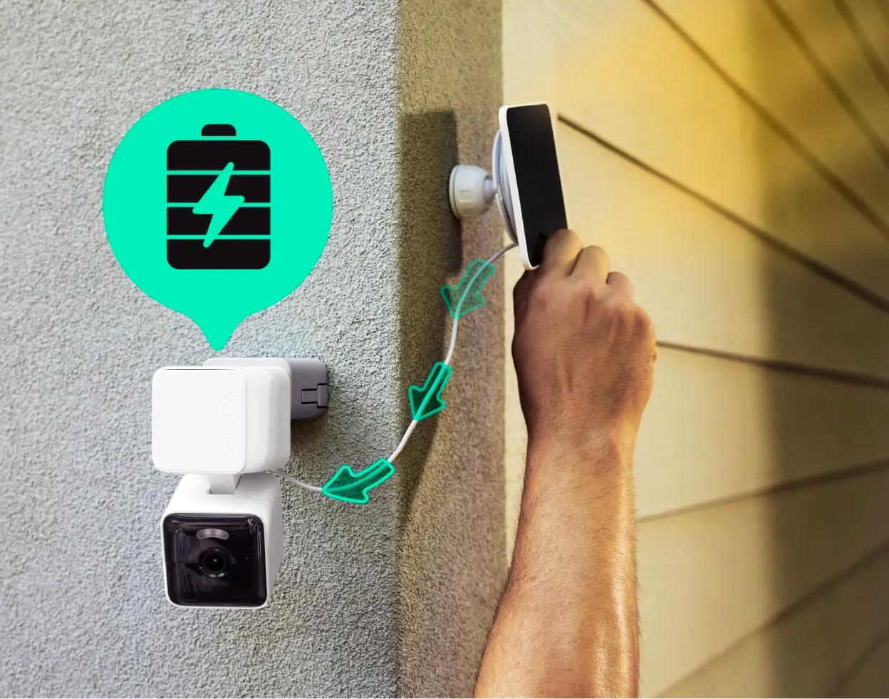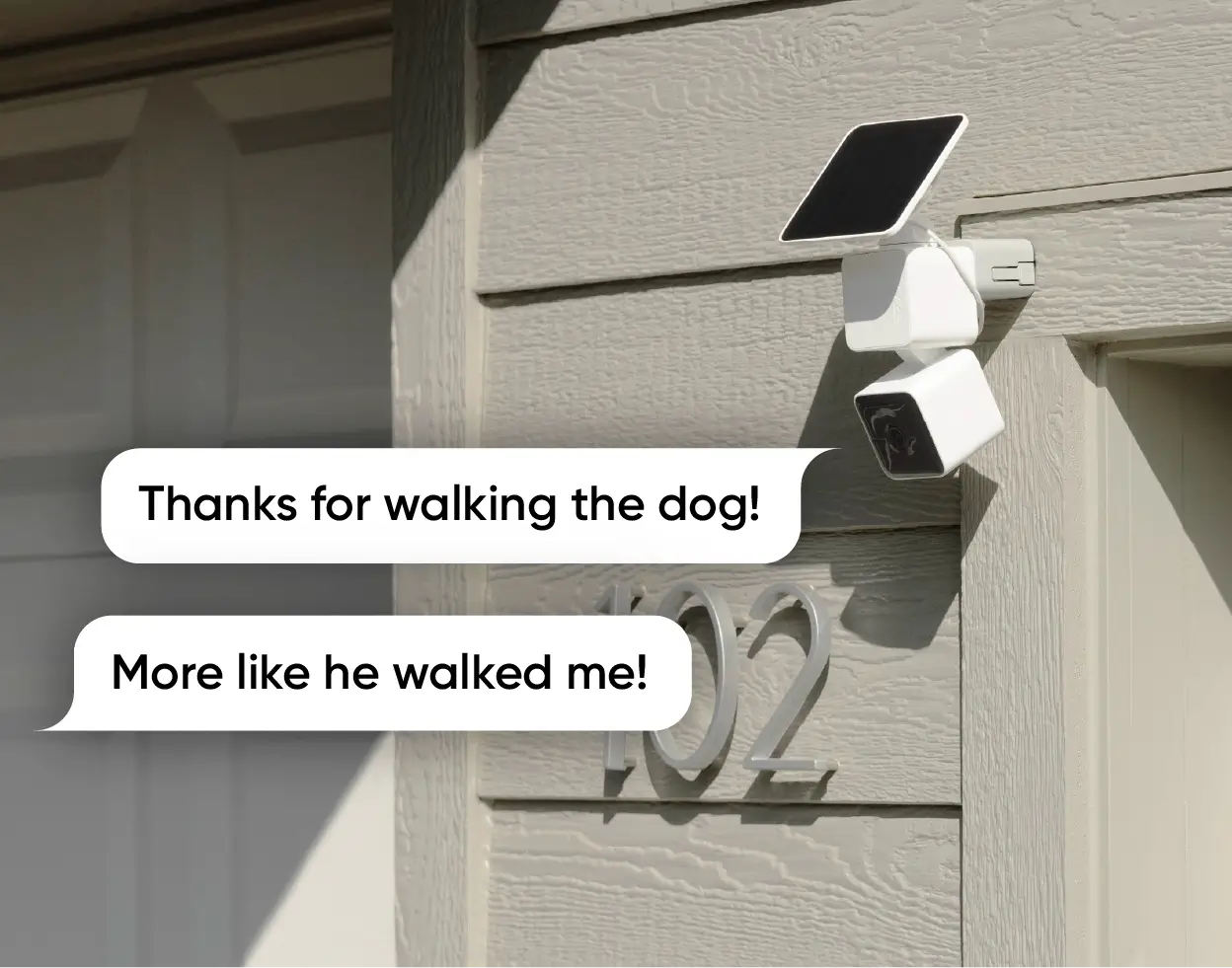 Connect the solar panel on top of the camera for a tidy install. Or place it separately where the sunlight’s strongest for maximum charging power. The choice is yours.