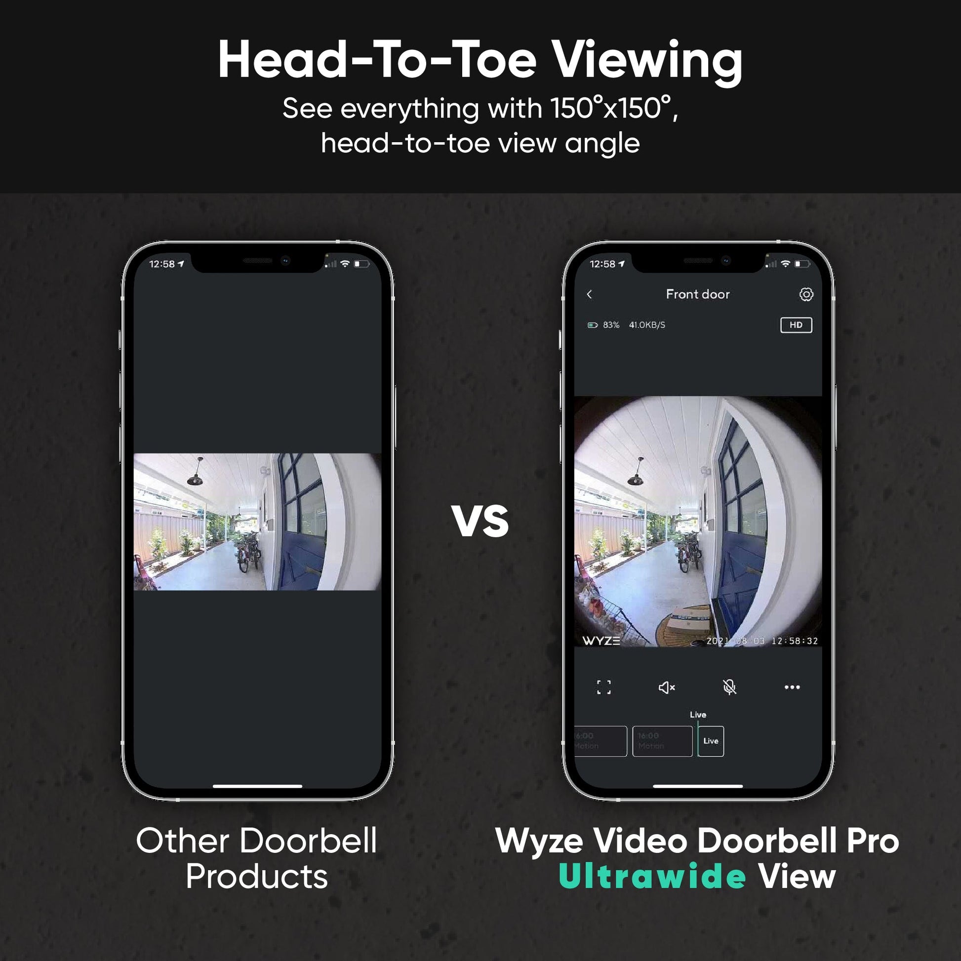 Wyze Video Doorbell Pro features a head-to-toe, ultra-wide viewing angle, so not only can you see the package at your doorstep, but even the house down the street.