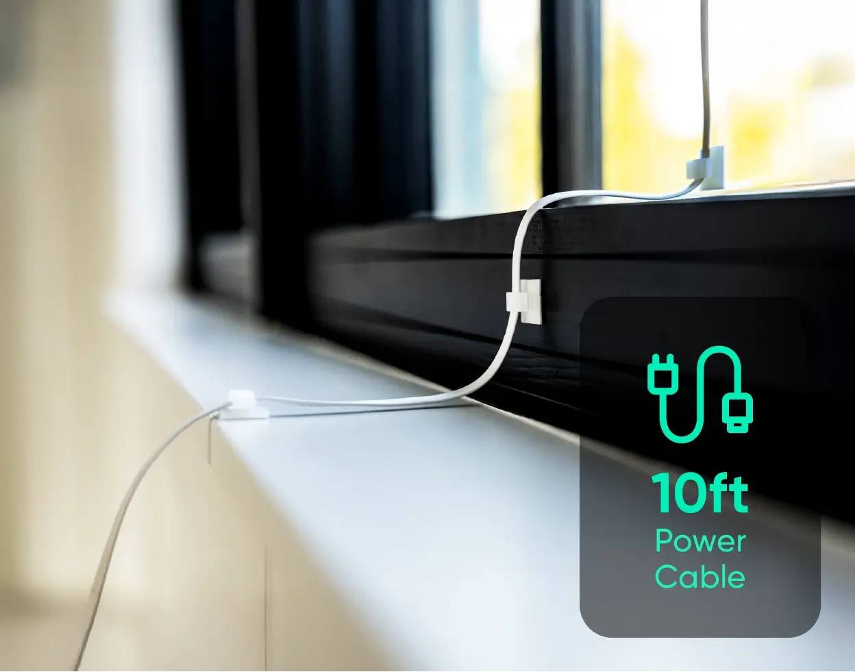 We've included an extra-long 10 ft power cable with cable clips for tidy mounting.